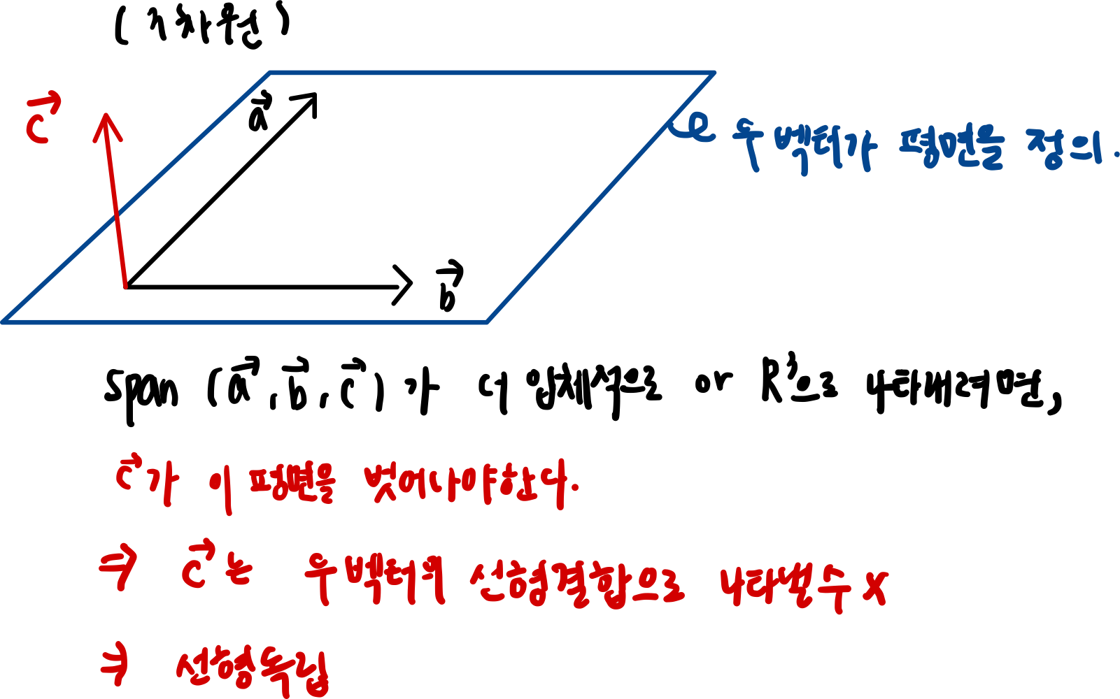 선형 독립은 해당 집합의 모든 벡터들이 다른 방향을 나타낸다는 것이다 ! ! !