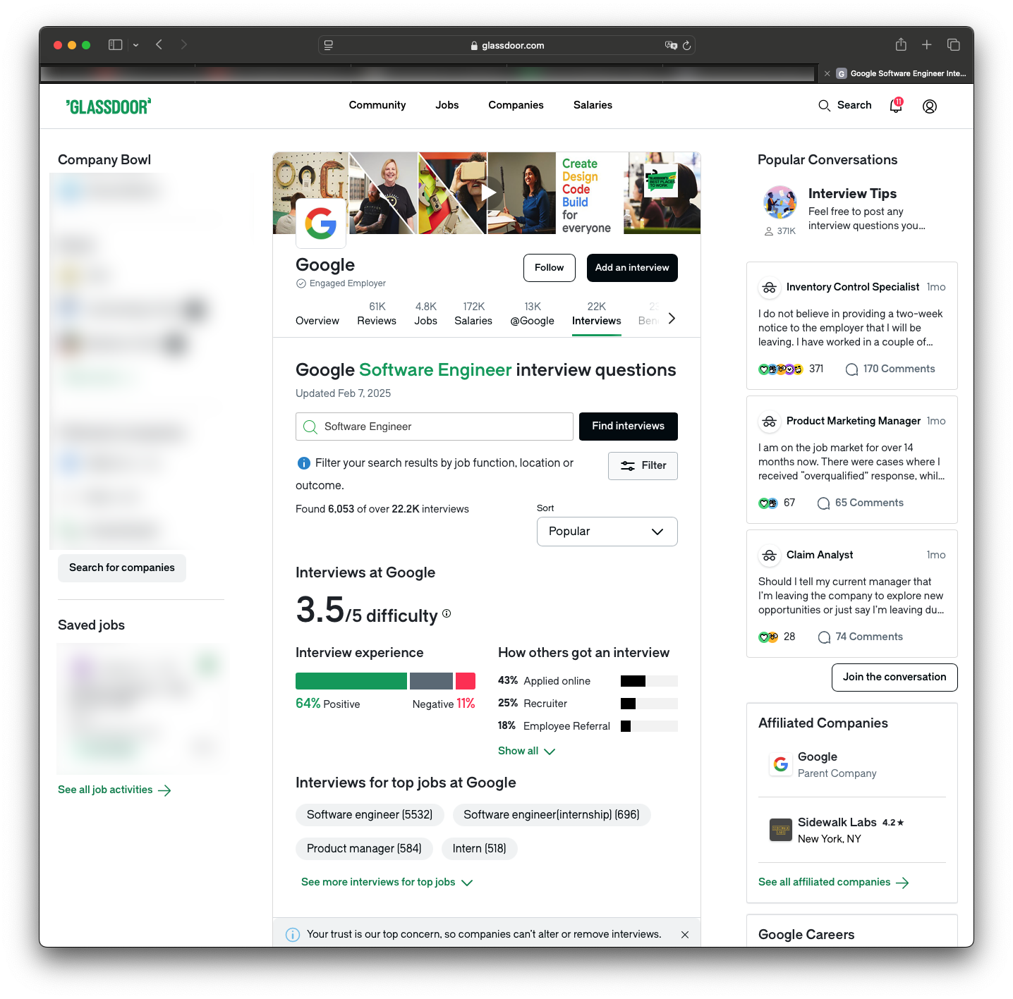 면접을 준비하면서 했던 일은, 우선 glassdoor에서 해당 회사의 면접 질문들 파악하기였다. 나는 정확히는 SRE 직무였지만, 그렇게 찾으면 많이 없어서 software engineer 직무까지 찾아봤다. 이렇게 사람들이 아주 자세히 써놓는다.